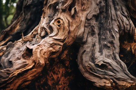 Exploring the textured bark of an ancient tree in a mystical forest setting