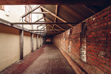 Old City Hidden Passageway with Embrasures in Brick Wall.
