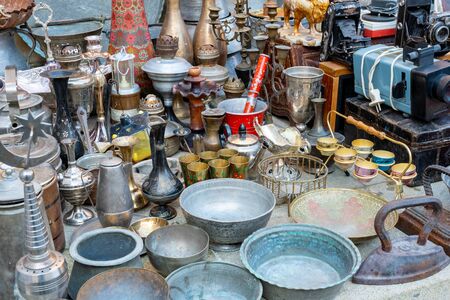 exhibition of antiques on local street market, Tbilisi, Georgia. High quality photo