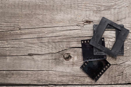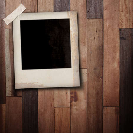 Old photo frame on old wooden background - Vintage filter processing style pictures