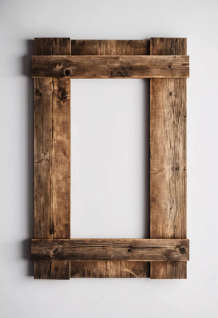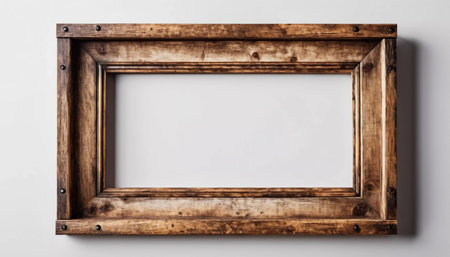 Rustic wooden frame features beautiful carvings and a weathered finish designed to hold art photographs set against clean white backdrop. A frame with intricate details against a white background. AI