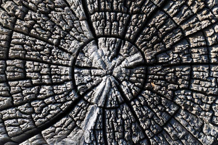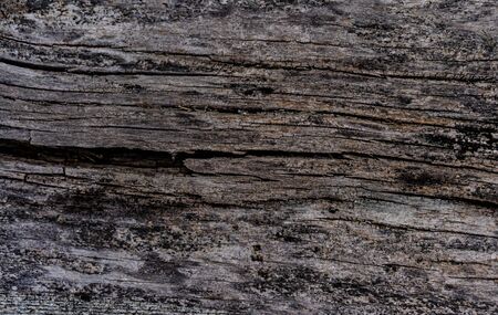Old grey brown wood cut texture. Grunge dark background closeup. Detailed texture of a cracked section of a tree.