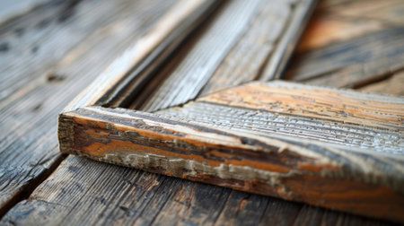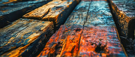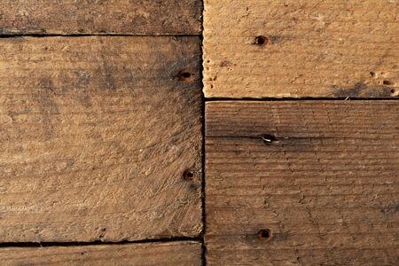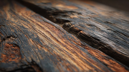 Close-up captures texture and rich color variations in weathered wood planks. Aged, textured surface shows wear, emphasizing the rustic look and natural wood grain detailing.
