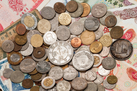 Foreign currency closeup of money. International currencies coin