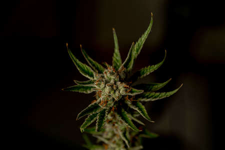 grow and use of marijuana cbd thc medicinal. Concepts of legalizing herbs weed, Macro shot with sugar trichomes, buds grown cannabis in the house, Bud cannabis before harvest