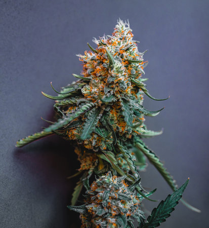 Beautiful cannabis big bud on the dark grey background
