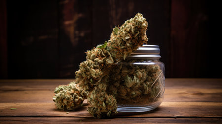 AI Generated. Cannabis Buds Resting On Weathered Wooden Surface