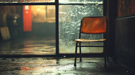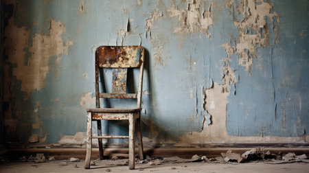 the distressed chair, worn and weathered from years of use, sits alone, awaiting its much-needed renovation, its faded upholstery and scratched wooden legs telling the story of a once-sturdy piece of furniture now in dire need of tlc and a fresh coat of paint. ai generated