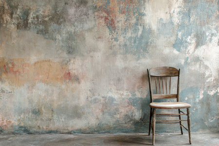 A wall painted with an aged, distressed effect for a photography backdrop, featuring an antique chair. --ar 3:2 --v 6.1 Job ID: 3b0bd8b1-dc94-41e1-b68c-486681589c6a