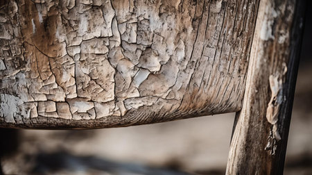 a captivating close-up of a canvas chair reveals its rich history. the natural grain, visible cracks, and peeling paint highlight the chair's vintage character and timeless elegance. ai generated