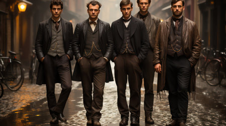 Rich English men walking on street, 1890th, vintage photo Generative AI