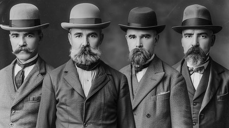 Vintage photo, portrait of four gentlemen in hats 1890th