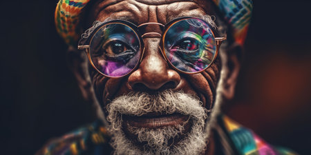 portrait of older African man in glasses and hat with kind facial expression. generative AI.