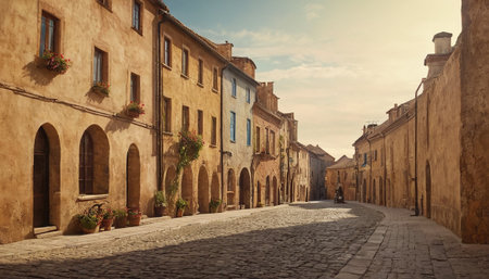 Cobblestone streets of an old European town, echoing tales of history and offering a timeless journey for wanderers Ai generated