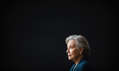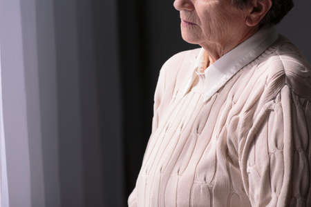 Sad senior lady alone in the dark room