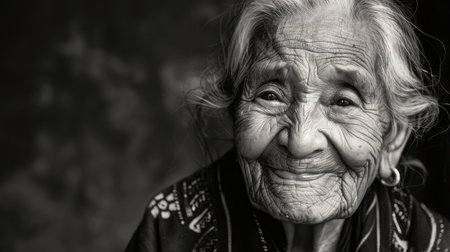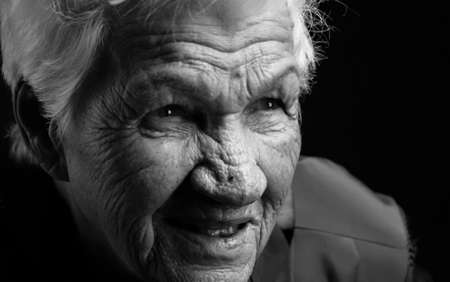 Elderly woman black and white portrait.