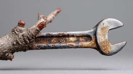 A detailed representation of a wrench firmly holding a rusty bolt, capturing the essence of craftsmanship and precision.