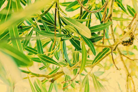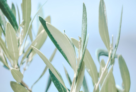 Botanical background, olive tree branches and leaves in summer, beautiful nature backdrop