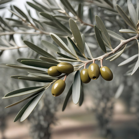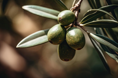 Fresh green olives on twig, symbol of Mediterranean agriculture generated by artificial intelligence