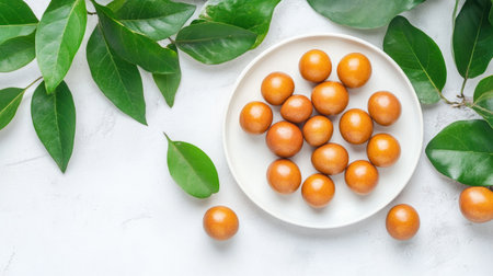 Top view loquats on white background. horizontal