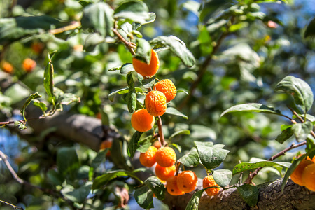 Fresh raw silverberry fruits, oleaster or russian olive ( Elaeagnus ).