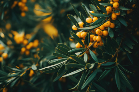 A bush of ripe yellow sea buckthorn in close-up
