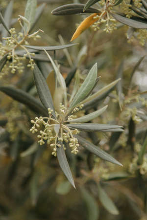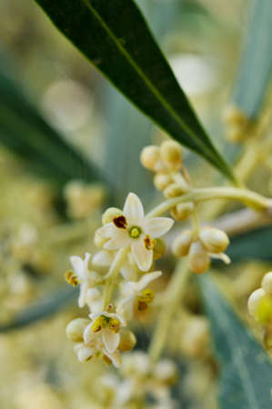 Olive tree buds and flowers, macro image