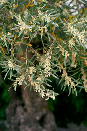 Blooming olive tree in spring. Close-up