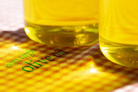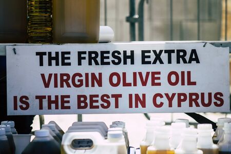 View of fresh extra virgin olive oil sold at the market of Limassol in Cyprus island