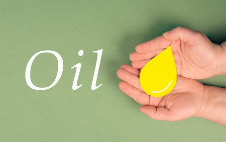Holding a yellow drop, symbol for oil, price increase caused by boycott, inflation, renewable energy