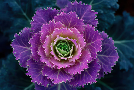 Ornamental Cabbages Brassica Oleracea decorative cabbage flowers from the top view.