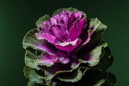 Decorative cabbage flower brassica oleracea on a green background. Flower head close-up studio shot