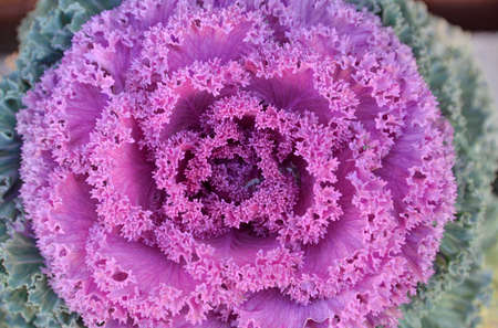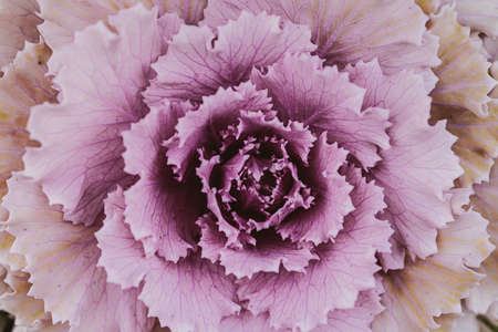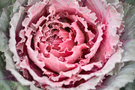 Pink decorative fall kale cabbage, macro shot