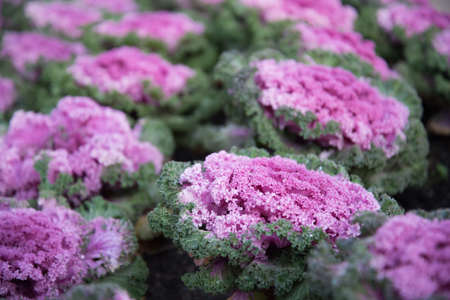 Many purple cabbage flowers in the ornamental garden.