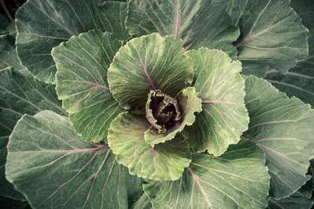 Cabbage (brassica oleracea) plant leaves, top view