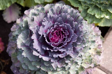 Purple Ornamental Cabbage and Flowering Kale plant background