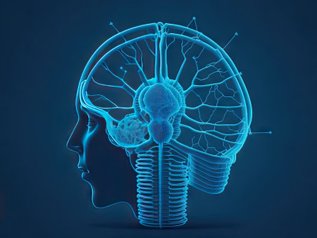 A detailed representation showing the human nervous systems intricate network, highlighting brain connectivity and signals.