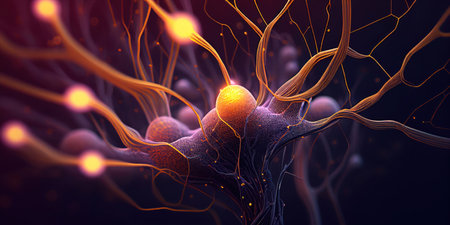 Glowing nerve cells in futuristic space backdrop generated by artificial intelligence