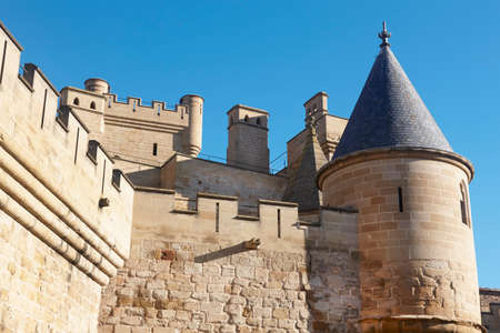 Antique castle and bell tower in Olite. Navarra, Spain. Horizontal