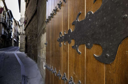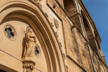 Logrono, Spain - August, 2022: Detail of the Portal of San Bartolome Church in Logrono, Spain. high quality photo