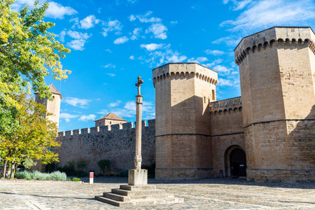 Antique castle battlement detail in Olite, Navarra. Spain. Vertical