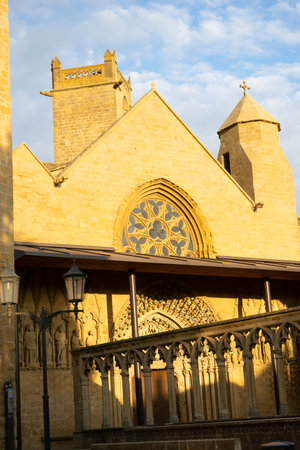 TARRAGONA, SPAIN - OCTOBER 4, 2017: Cathedral (Catholic cathedral). Sculptures on the facade of the building. Close-up