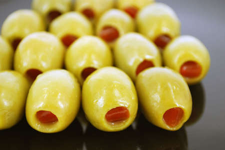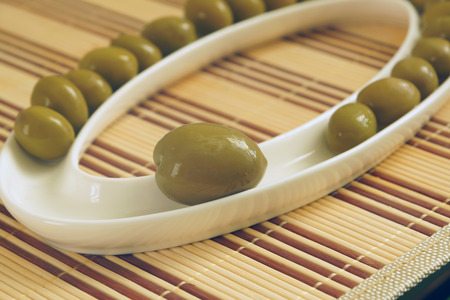 Spanish olive with small at the plate on a tablenapkin of Bambu