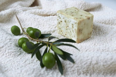 Laurus nobilis, Aleppo soap is a handmade, hard bar soap or Ghar soap made from olive oil and lye