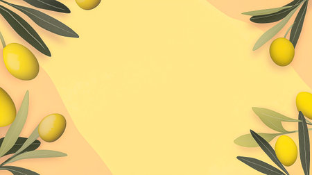 Olive background with lots of green leaves, empty space. Generated by AI
