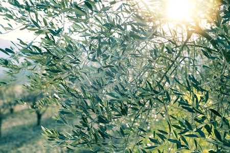 Olive branches on sunset in mediterranean region