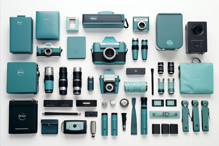 Vintage Analog World Camera - Knolling Concept for Retro Lifestyle and Photography Enthusiasts