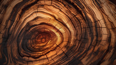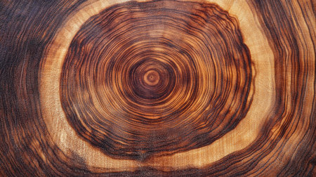 A close-up of a tree cross-section, focusing on the detailed growth rings and rich, earthy wood texture, perfect for rustic design, banner