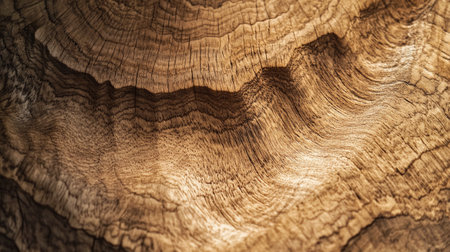 Abstract wood texture from a cross slice of natural wood, showcasing intricate rings and a smooth surface.
