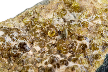 Macro stone Grossular mineral on white background close up